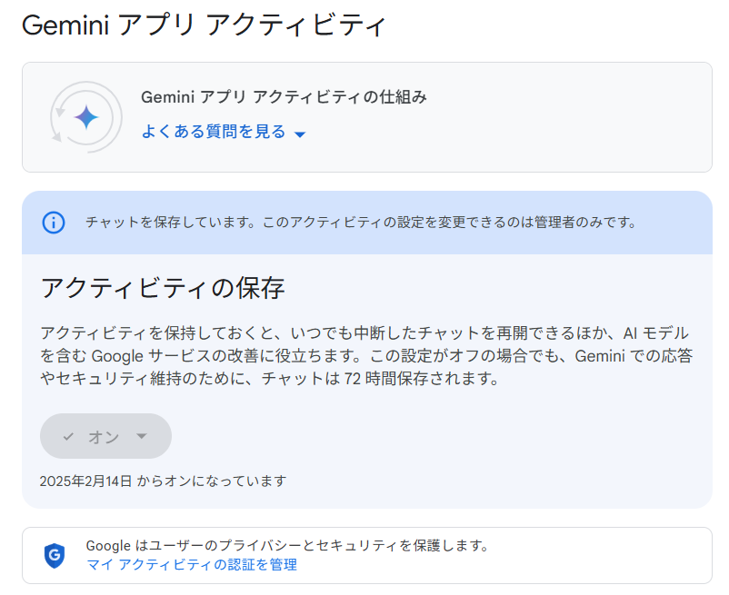 「Geminiアプリ アクティビティ」をオフにする:ページ内にある「Geminiアプリ アクティビティ」を見つけ、トグルボタンをオフにします。