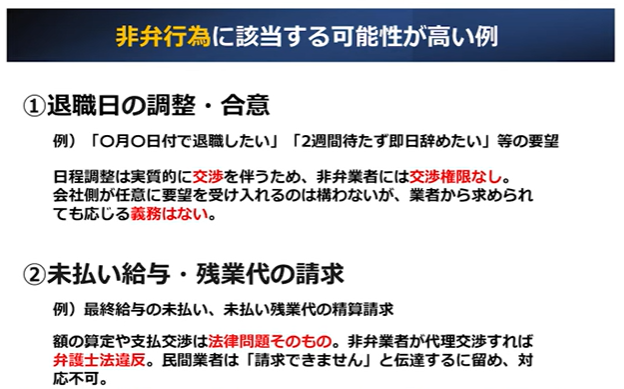 日程調整は実質的に交渉を伴うため、非弁業者には交渉権無し。