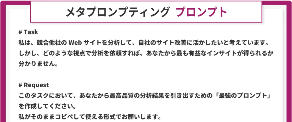 プロンプトをAIに考えさせる。専門用語ではメタプロンプティングと呼ぶ。